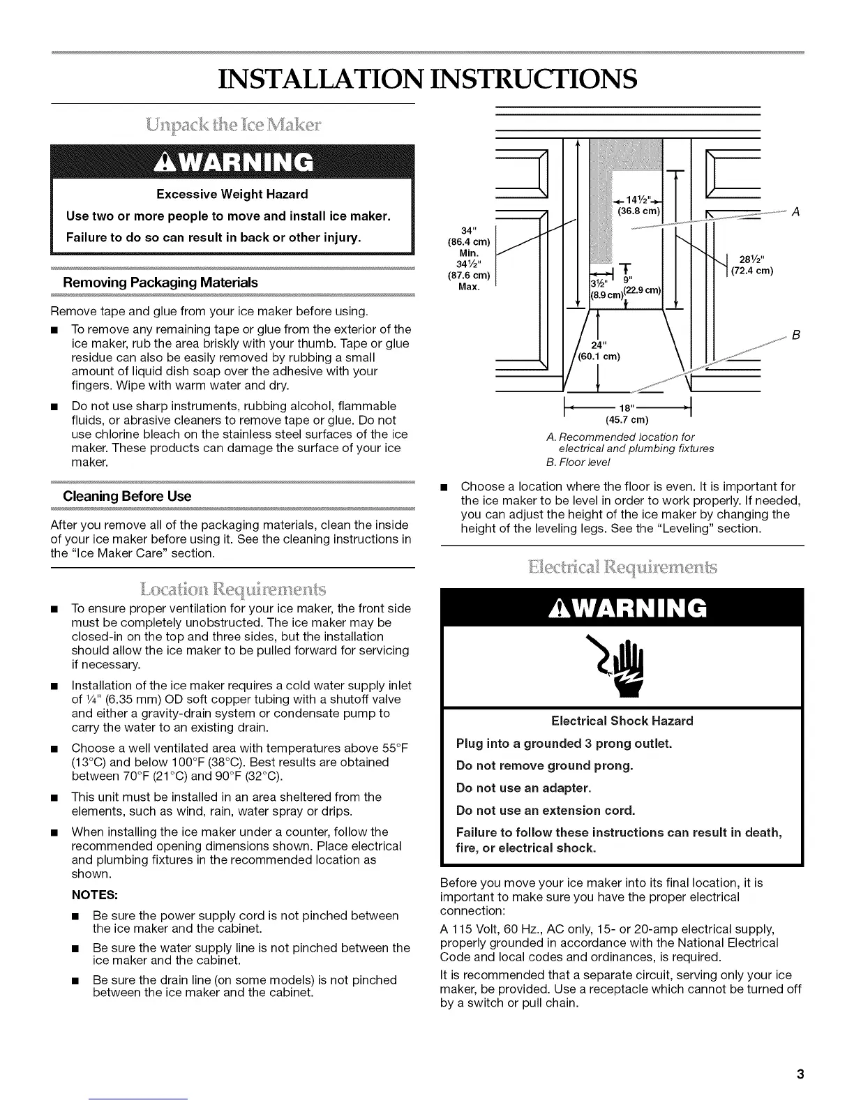 • Installationoftheicemaker requiresacoldwatersupplyinlet