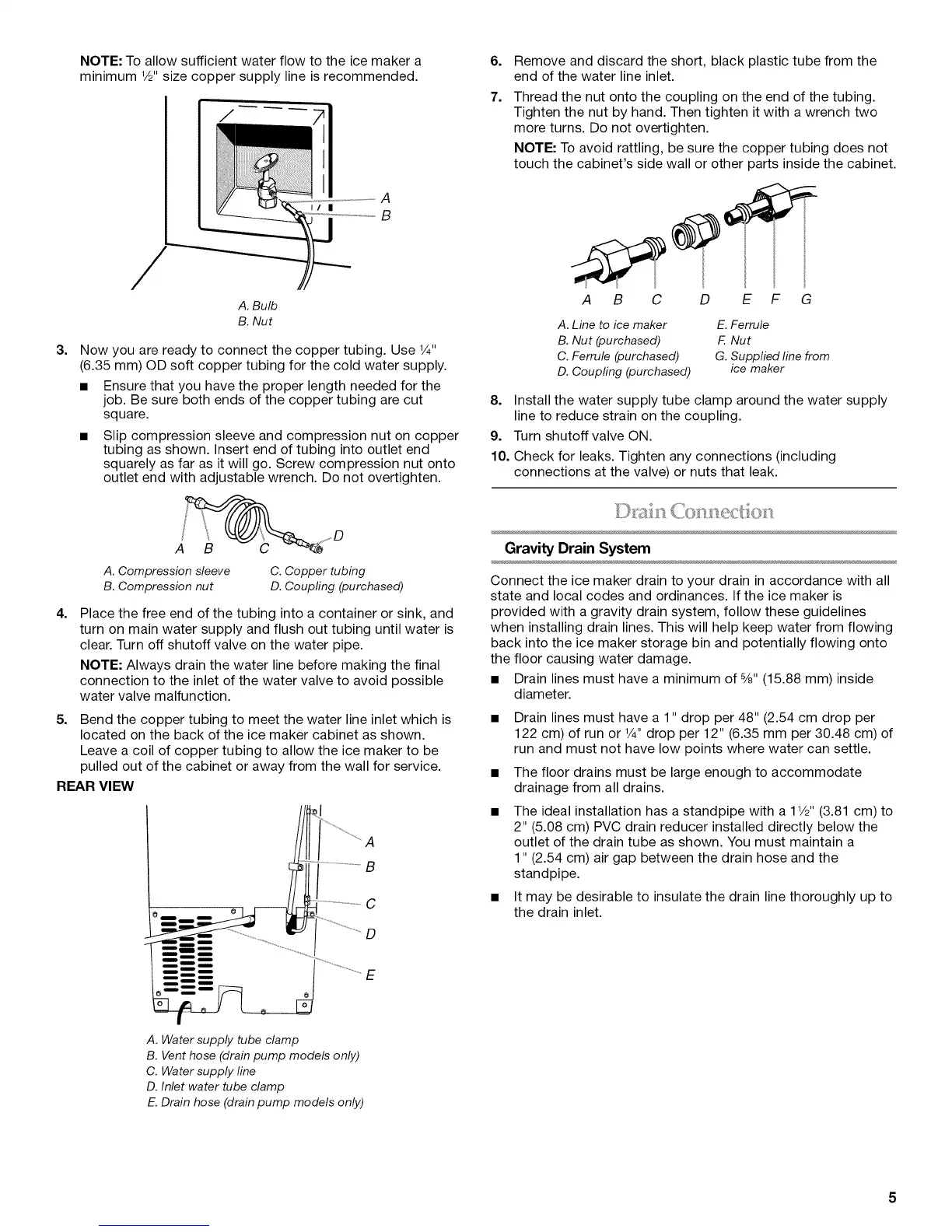 provided with a gravity drain system, follow these guidelines