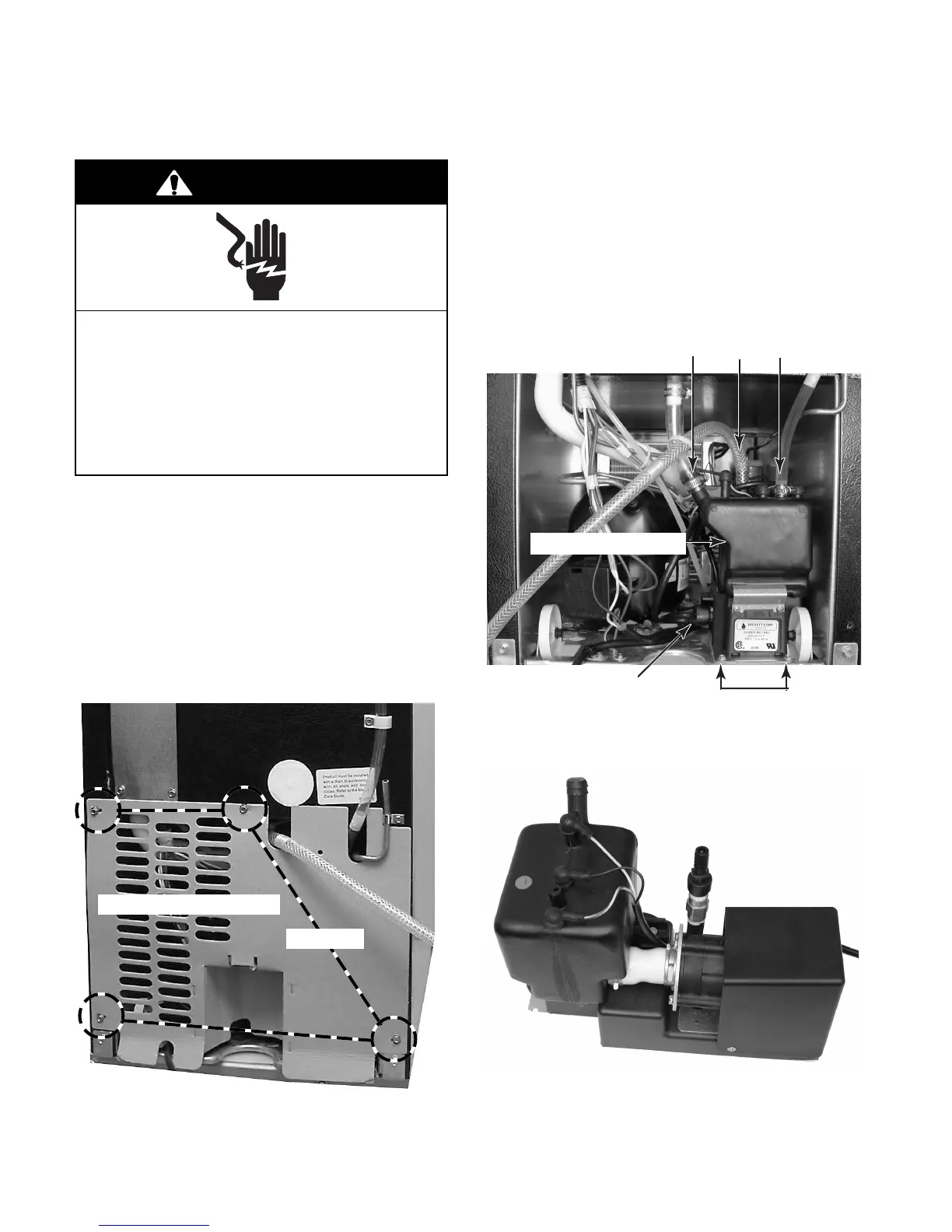 8. Remove the internal drain pump from the