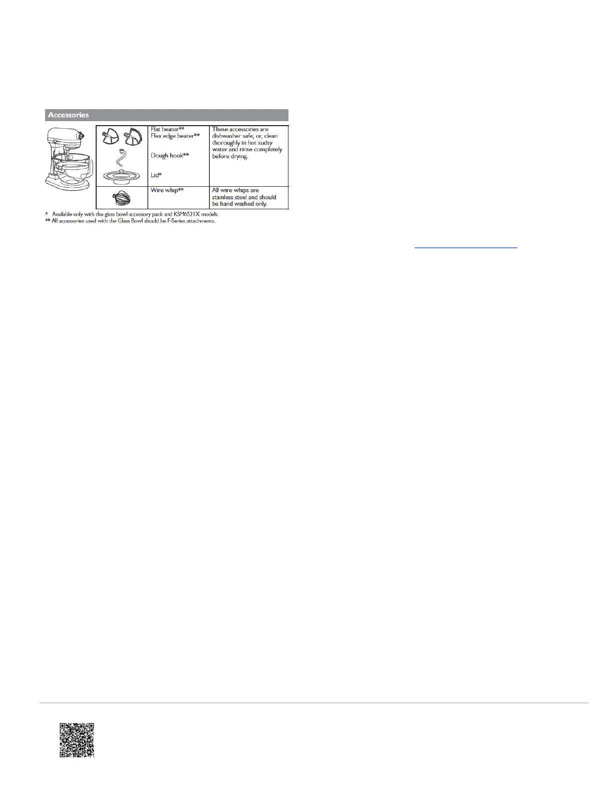 See the "Accessories" chart below for care and cleaning for the accessories.