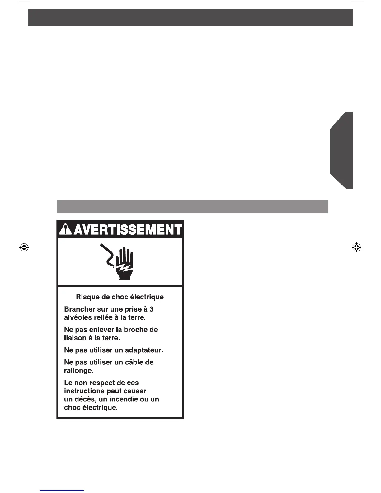 10. Pour éviter tout risque de choc électrique, ne pas immerger le corps principal