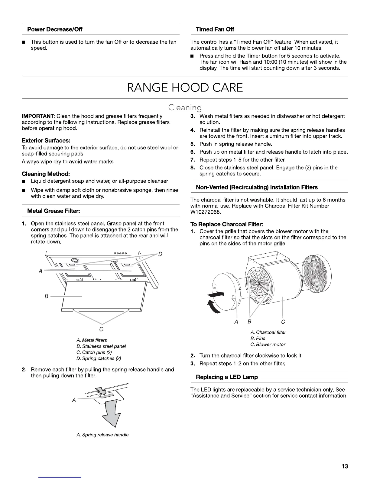 KitchenAid KVUB600DSS - Range Hood Care; Cleaning; Metal Grease Filter; Non-Vented Installation Filters