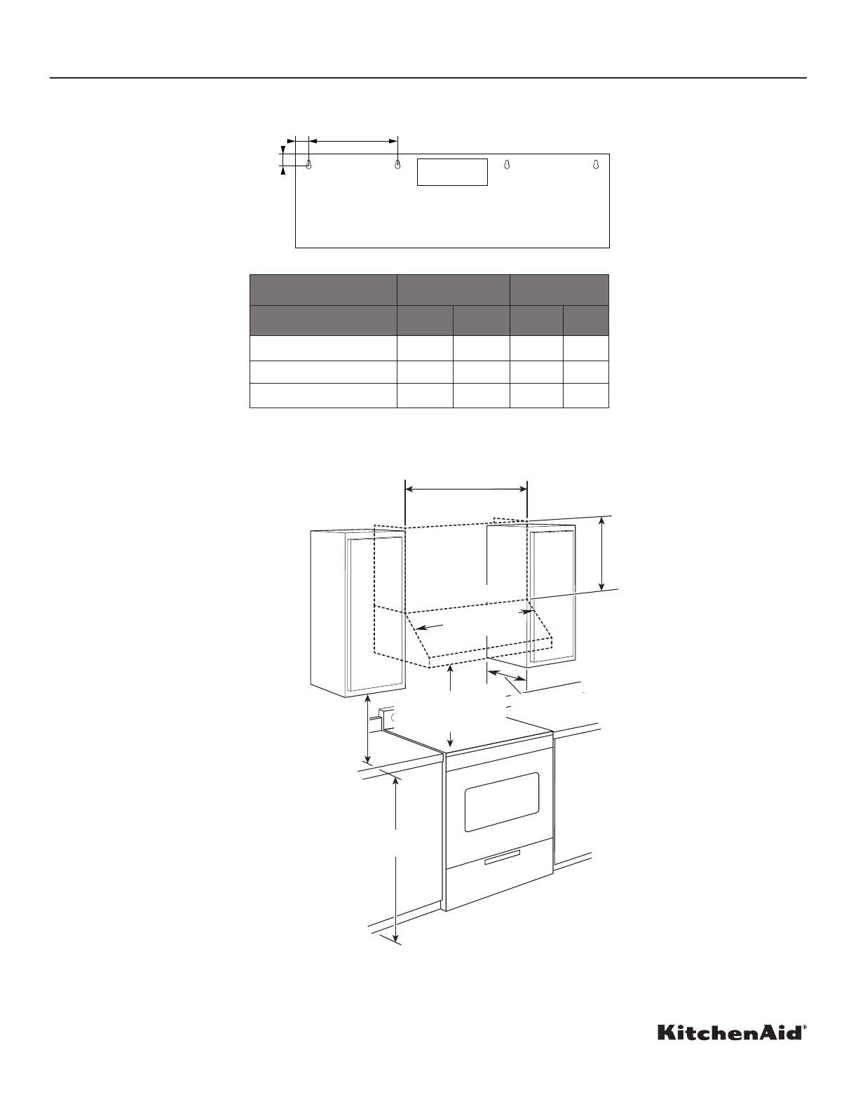 Minimum distance “X” : 24" (61.0 cm) to electric cooking surface and 30" (76.2 cm) to gas cooking surface.