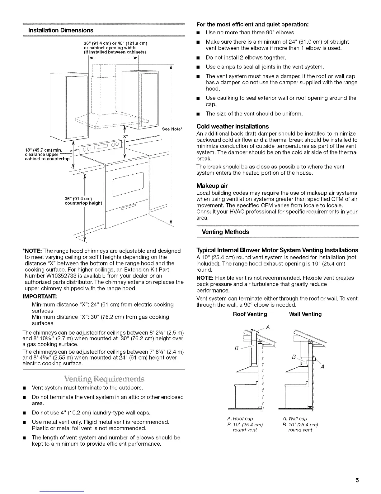 *NOTE: The range hood chimneys are adjustable and designed