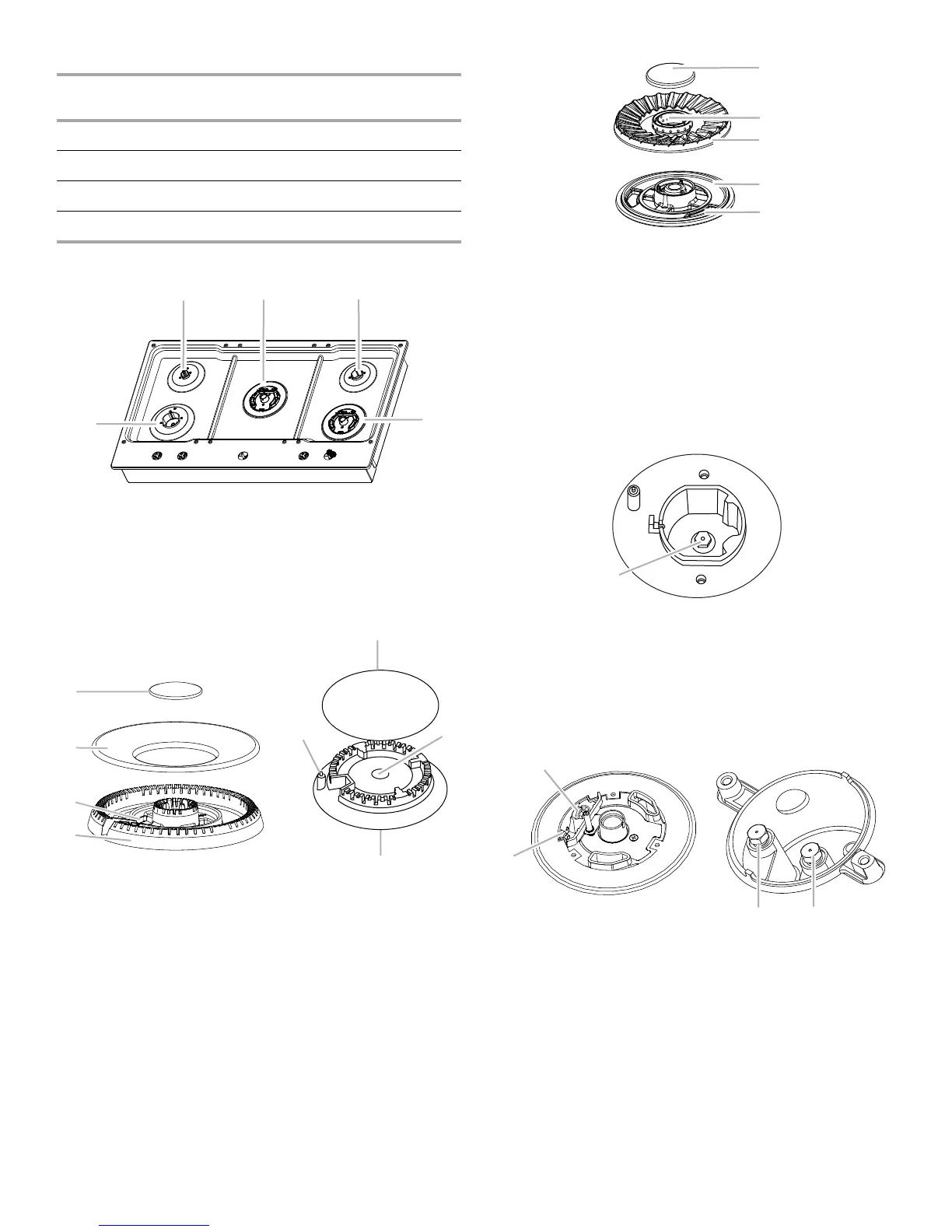 6. Remove all burner caps and burner bases (see the User