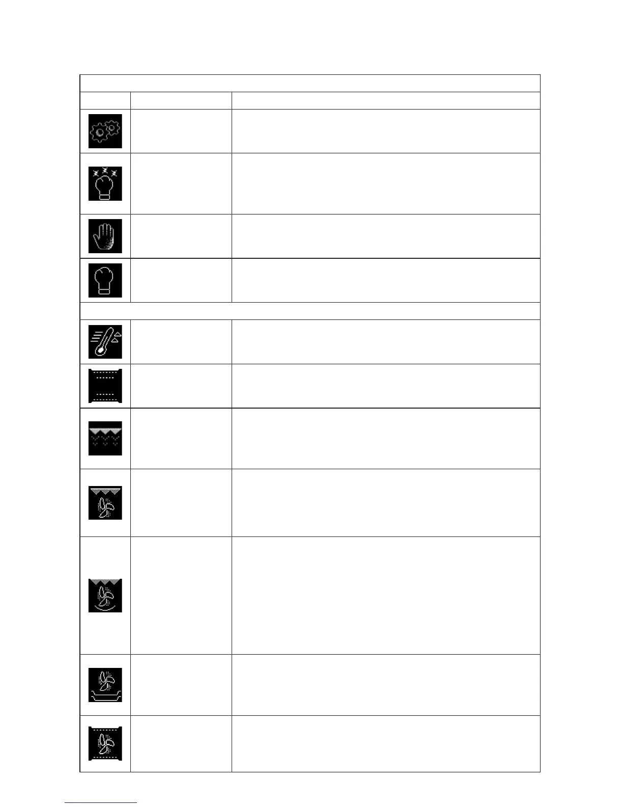Functions description table