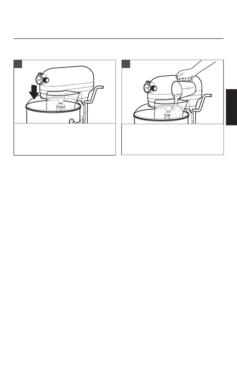 Use el escudo vertedor para evitar que los ingredientes salpiquen fuera del tazón al mezclar,