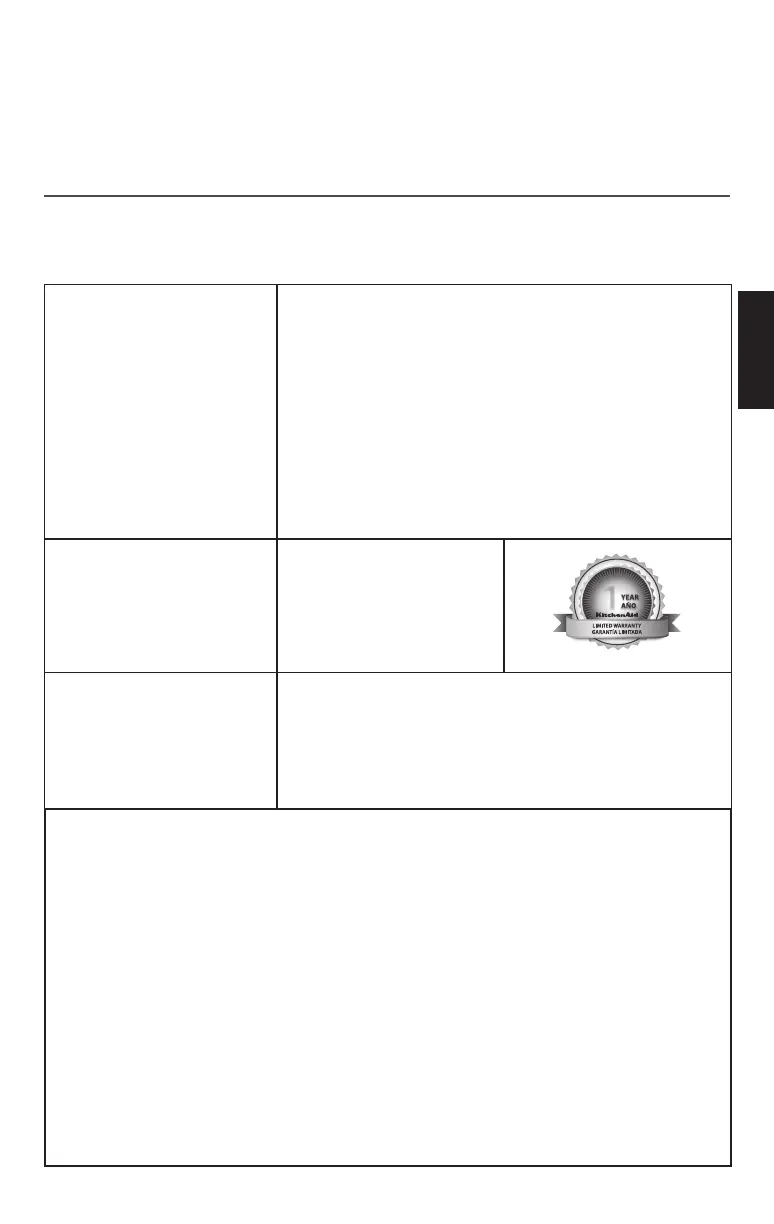 KitchenAid cubrirá La mano de obra calificada y piezas de repuestos necesarias