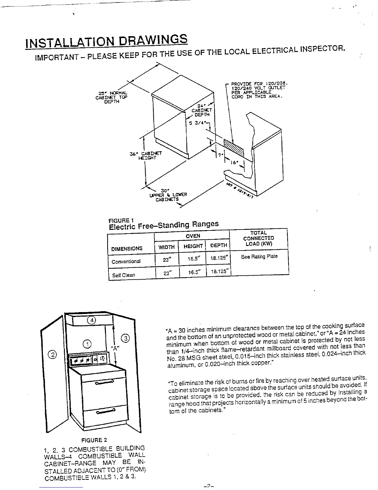 andthe bottom of an unprotected wood ormetalcabinet." or "A = 24.inches