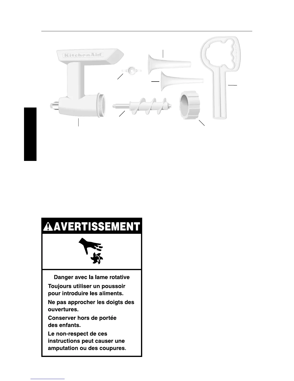 REMARQUE : Utilisez le poussoir à saucisses (modèle SSA) avec le hachoir (modèle FGA).