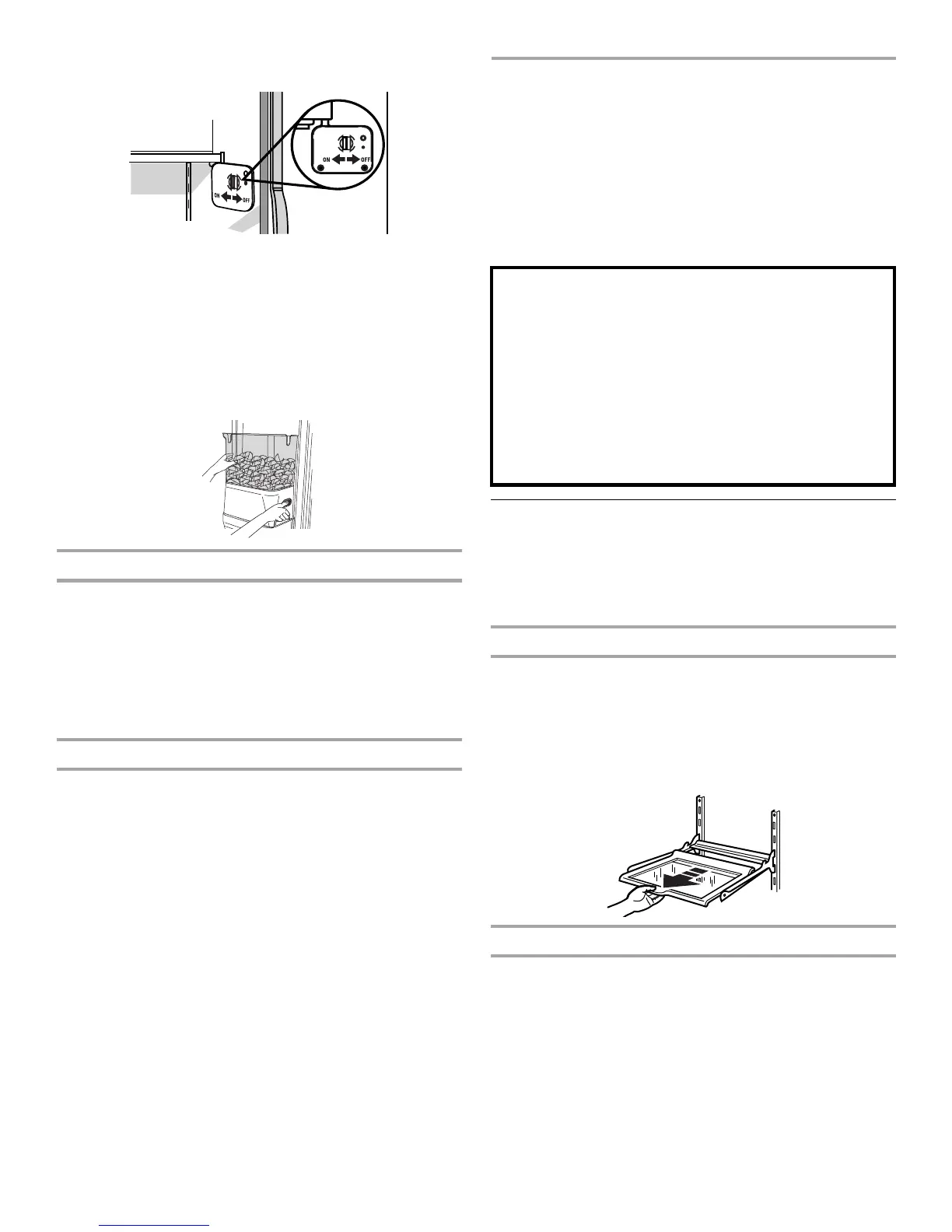 glaçons à la position OFF (à droite) pour enlever le bac à