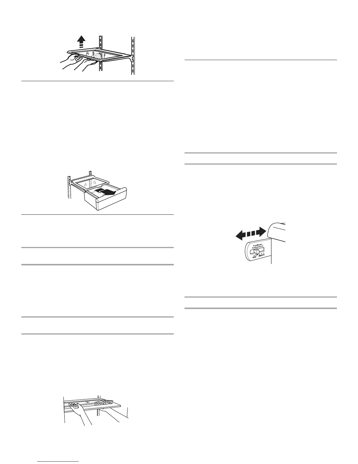 1. Glisser le bac à légumes ou le tiroir à viande directement vers