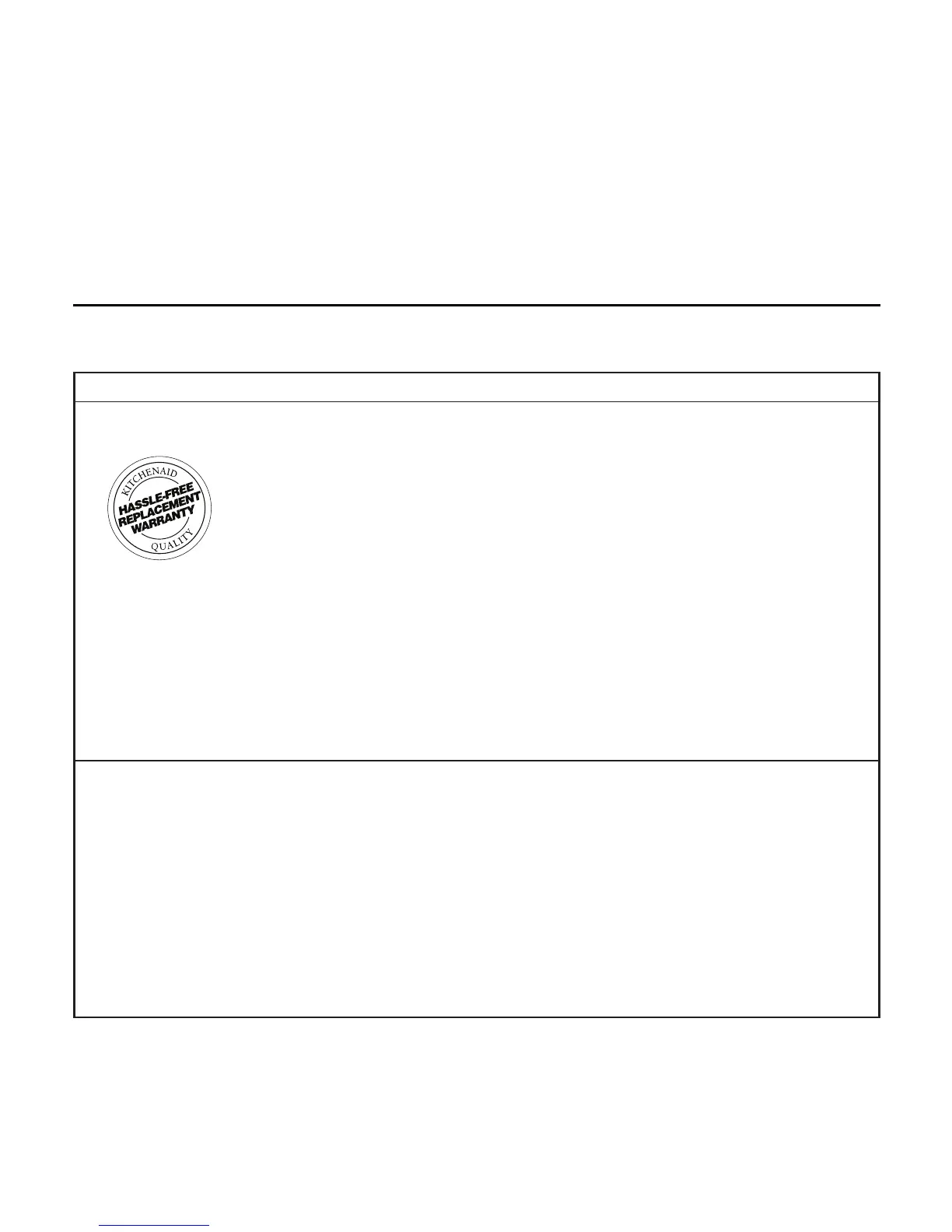 and workmanship. Service must be provided by an Authorized KitchenAid