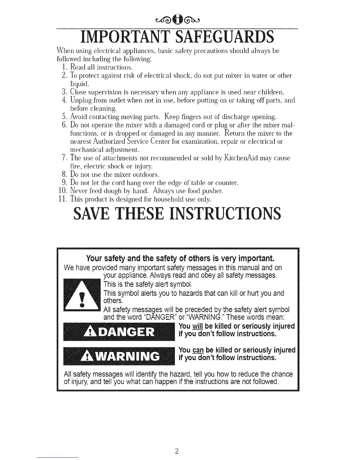 2. To protect against risk of electrical shock, do not put mixer in water or other