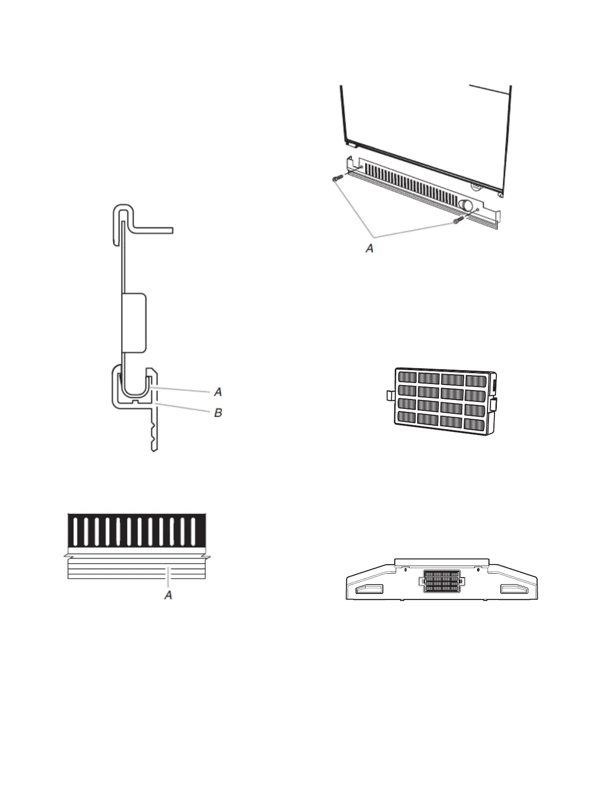 À l’aide des 2 vis, fixer la grille de la base au réfrigérateur,