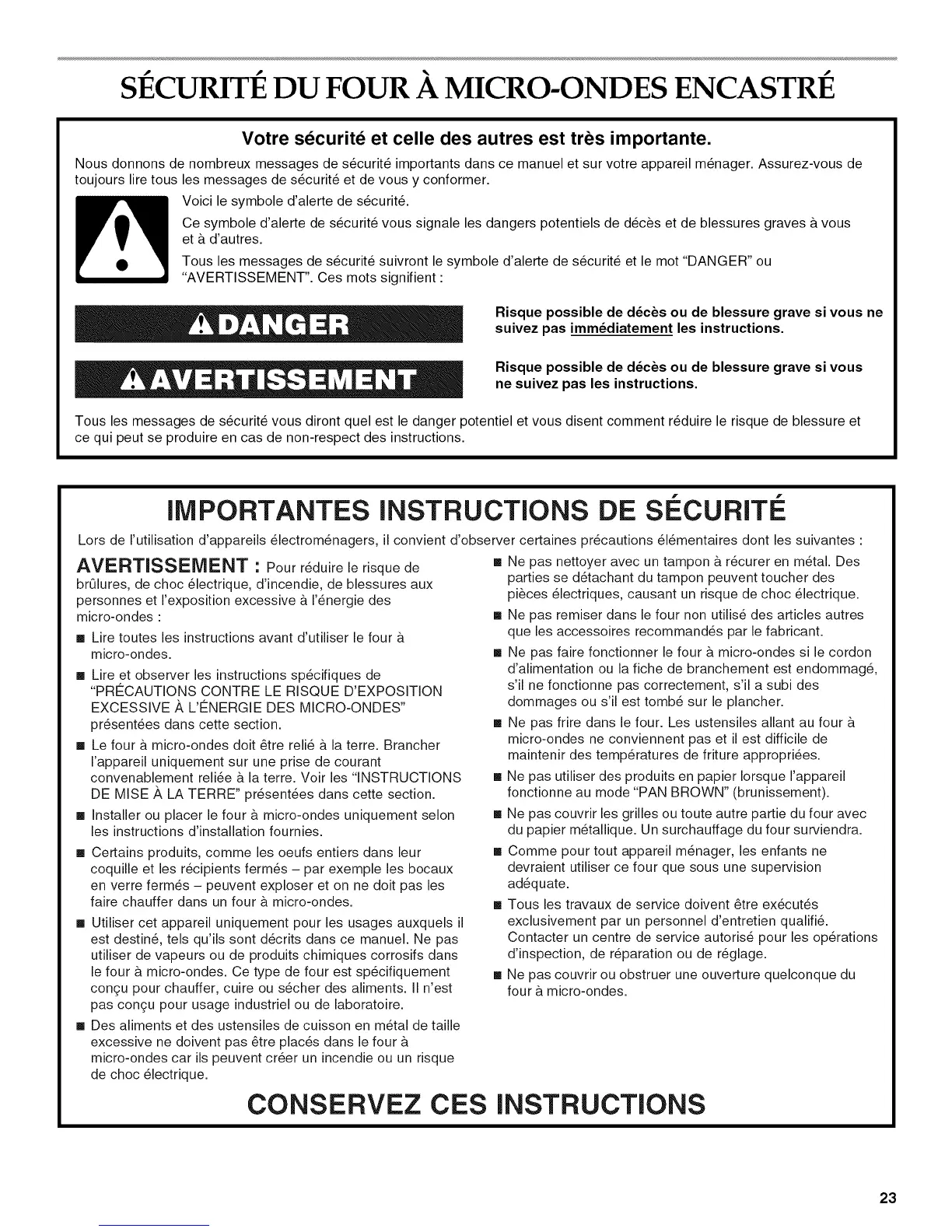 IMPORTANTES iNSTRUCTiONS DE Sl CURITI