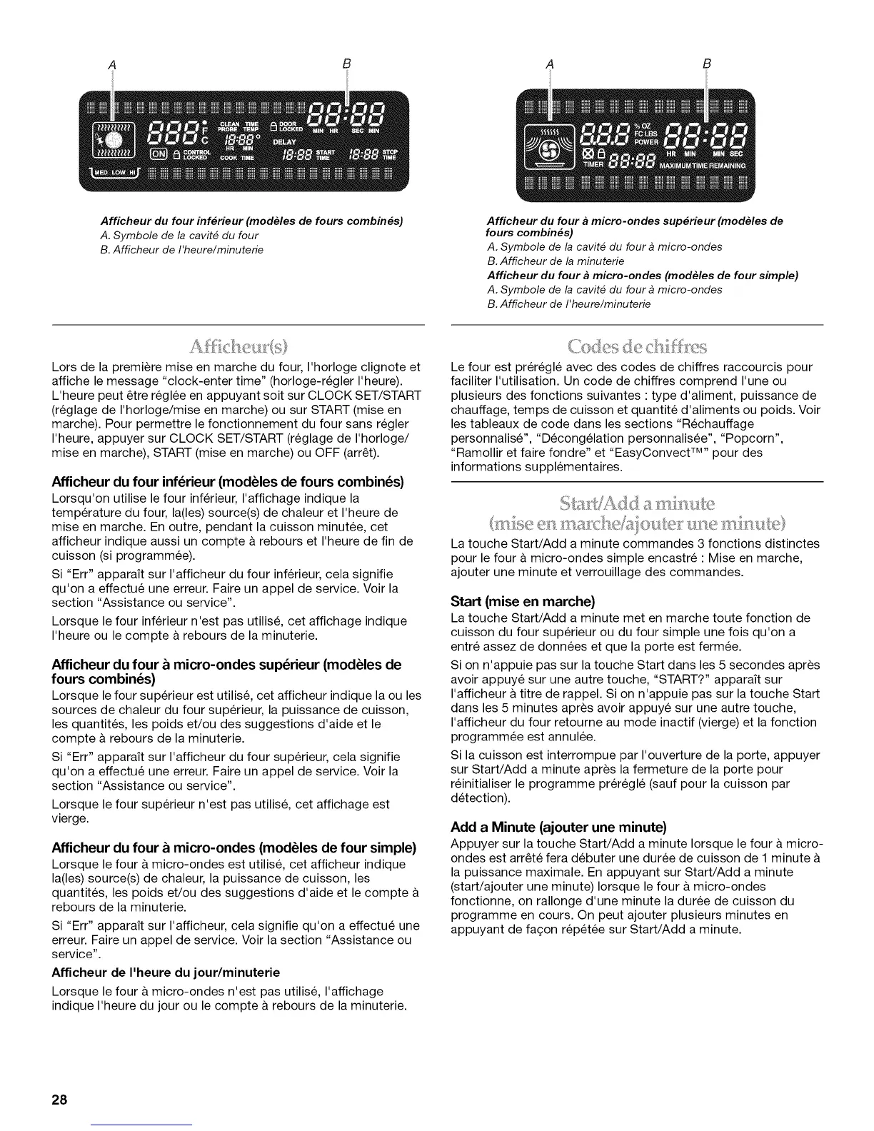 Afficheur du four & micro-ondes (mod&les de four simple)