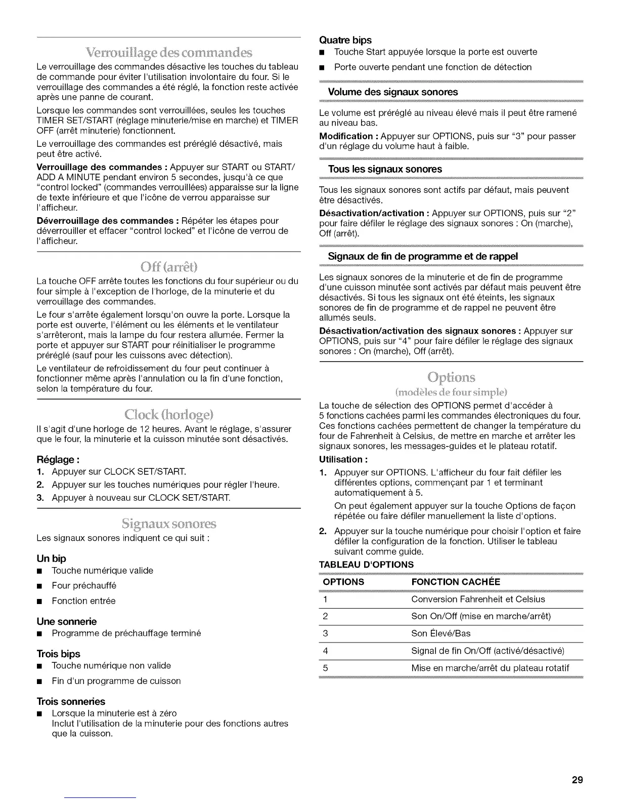 1. Appuyer sur OPTIONS. L'afficheur du four fait defiler les