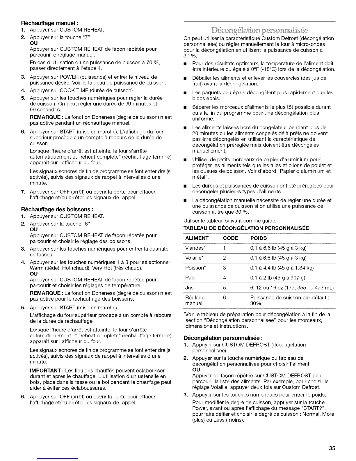 pour la decongelation en utilisant la puissance de cuisson &