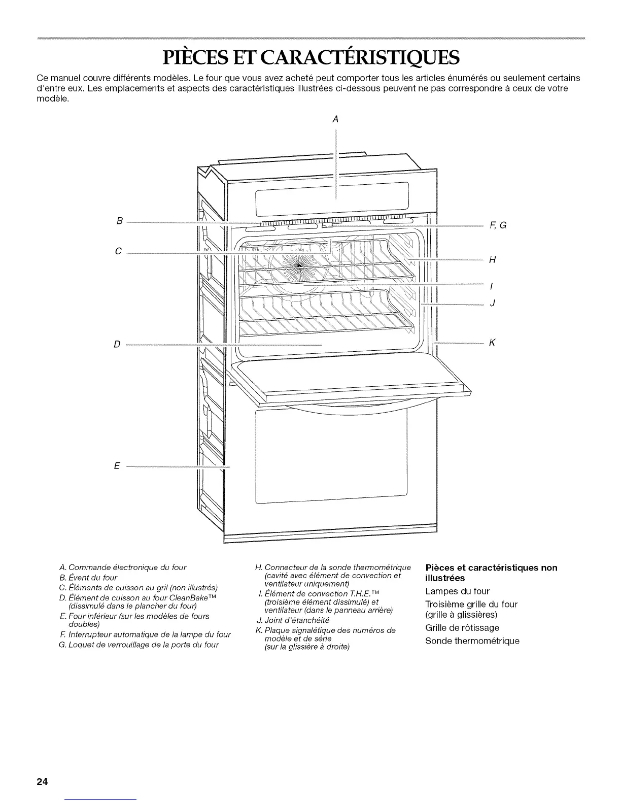 Ce manuel couvre differents modeles. Le four que vous avez achete peut comporter tousles articles enum6r6s ou seulement certains