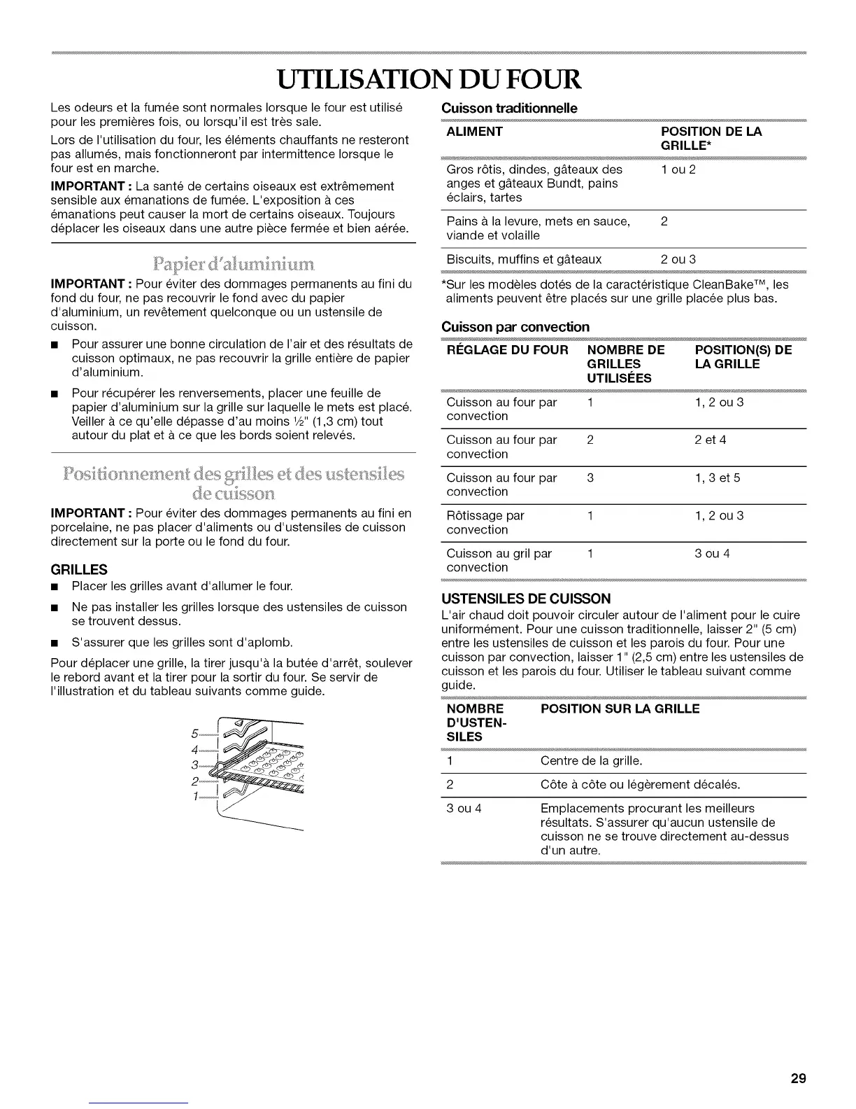 cuisson par convection, laisser 1" (2,5 cm) entre les ustensiles de
