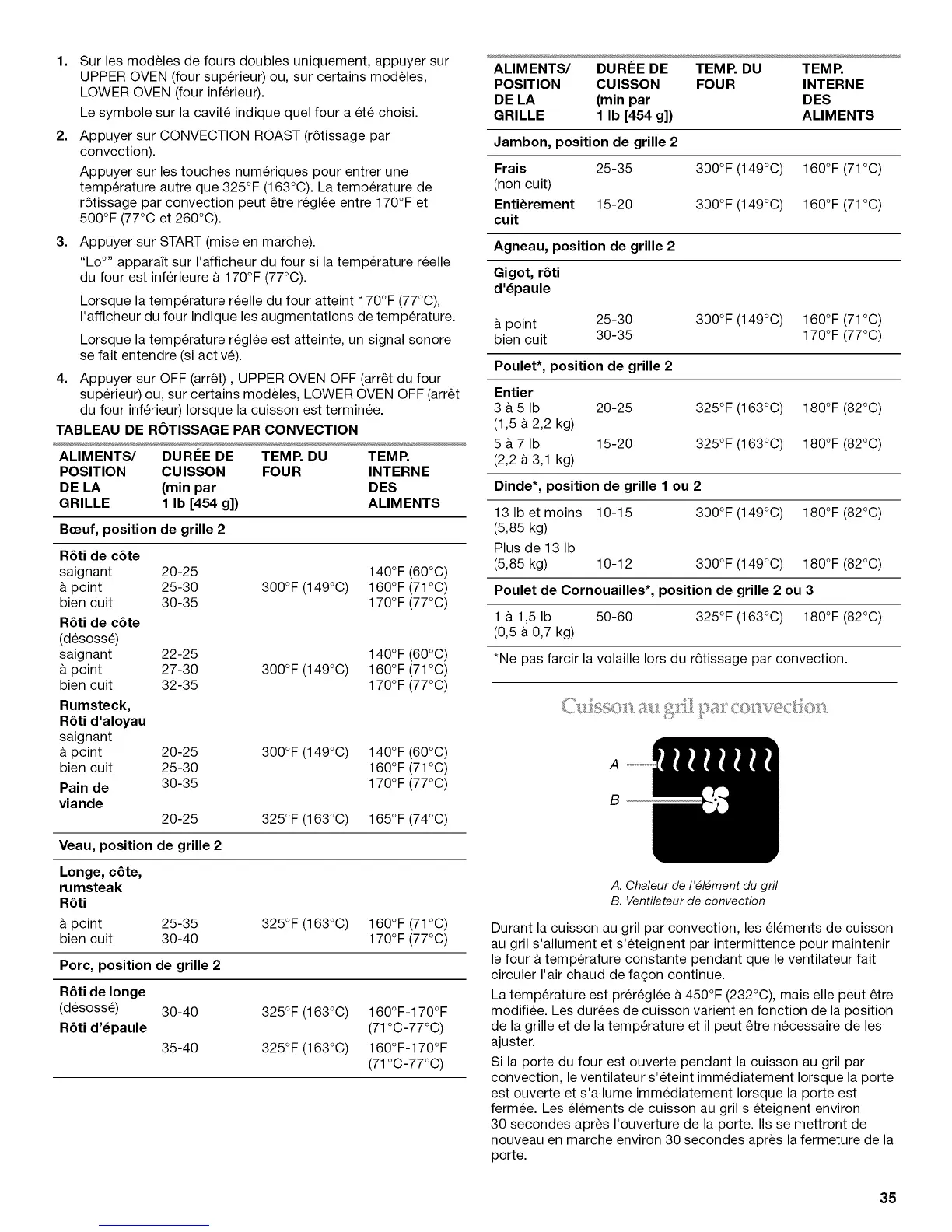 *Ne pas farcir la volaille Iors du r6tissage par convection.