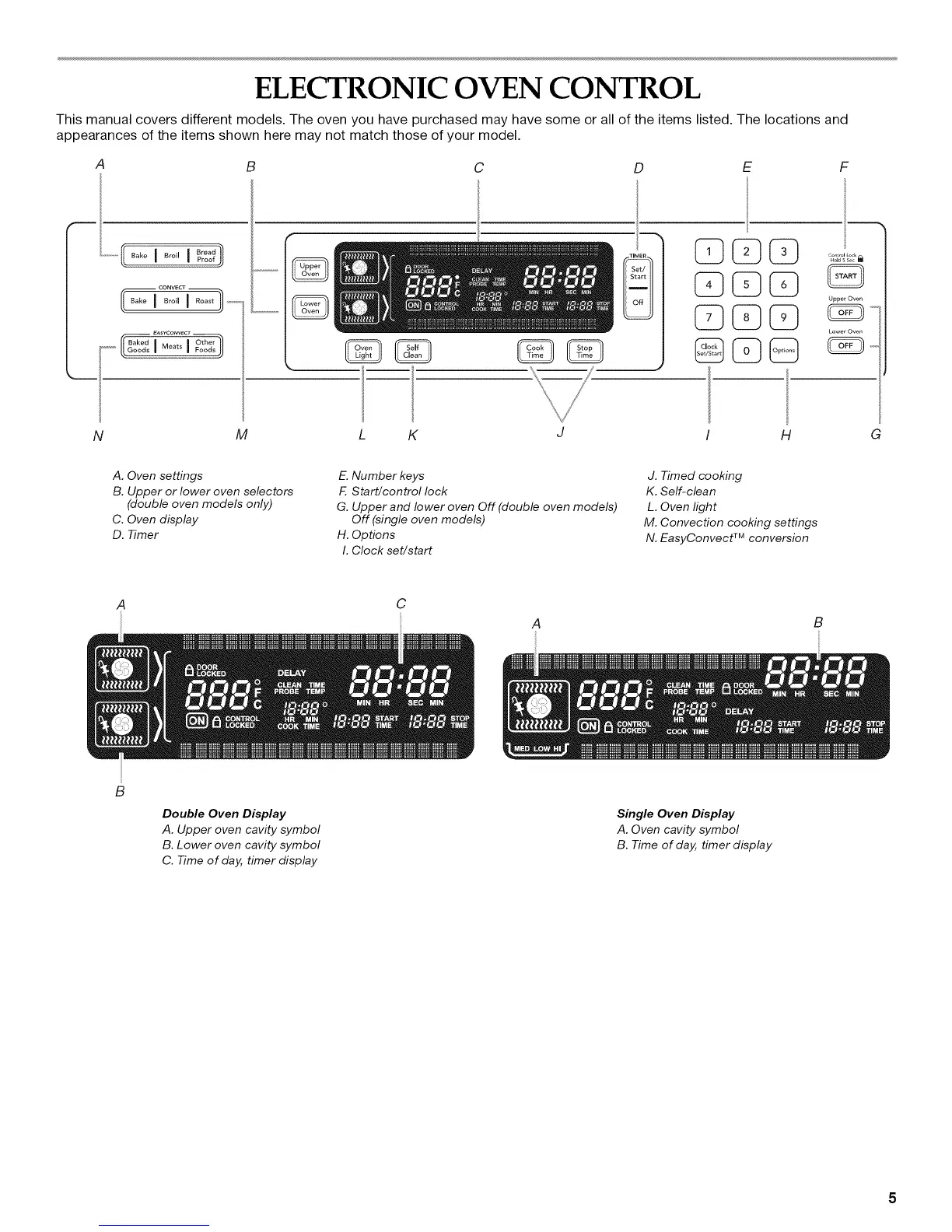This manual covers different models. The oven you have purchased may have some or all of the items listed. The locations and