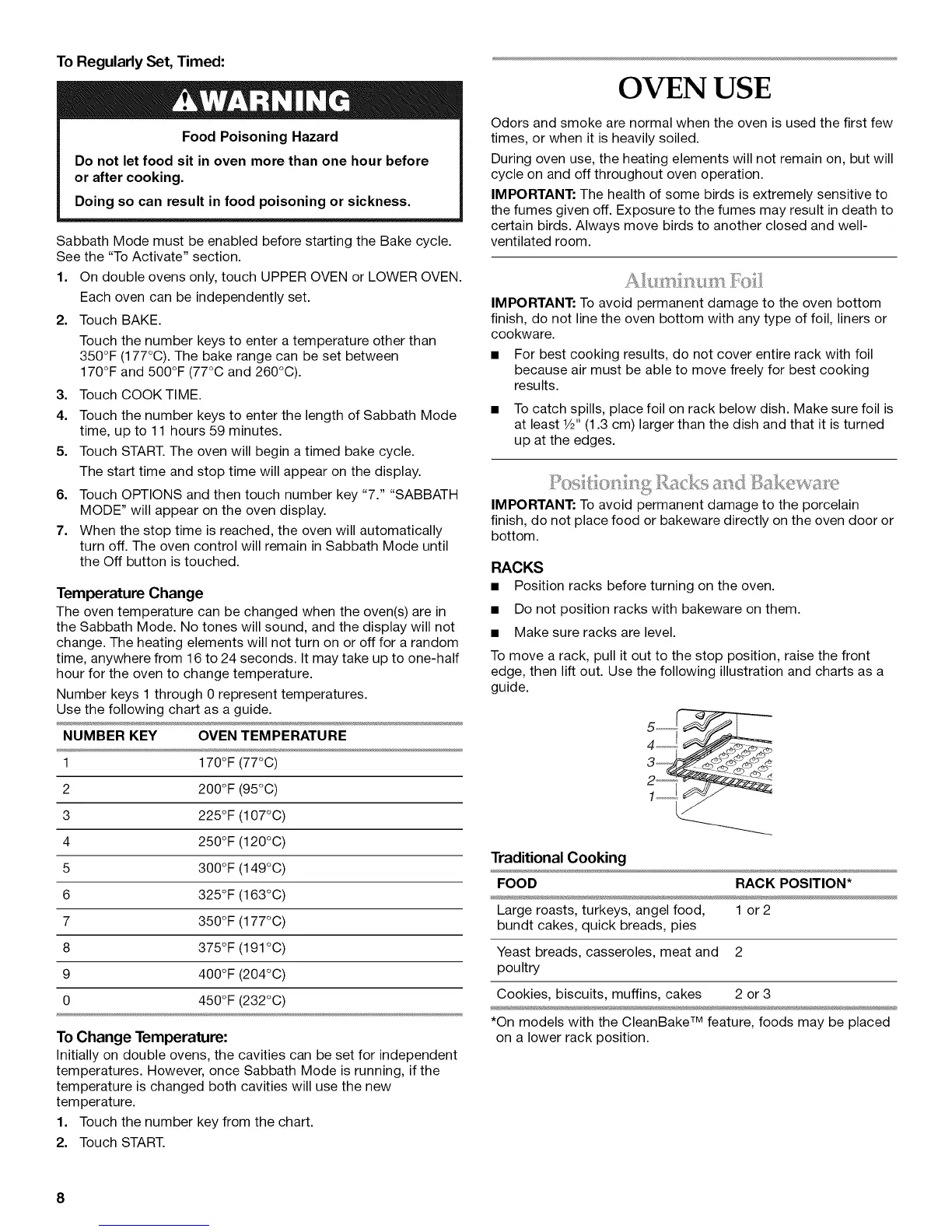 Sabbath Mode must be enabled before starting the Bake cycle.