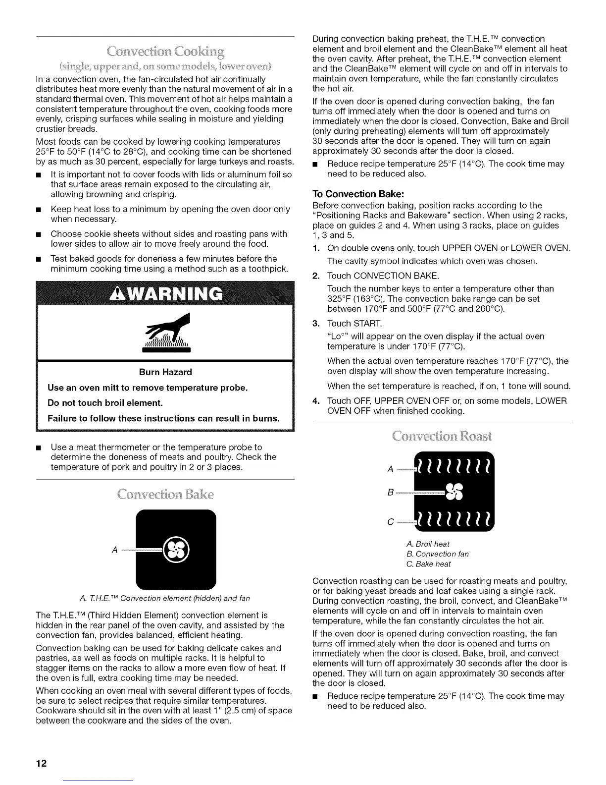 immediately when the door is closed. Convection, Bake and Broil