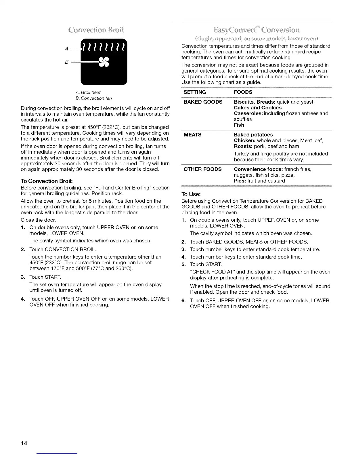 Before convection broiling, see "Full and Center Broiling" section