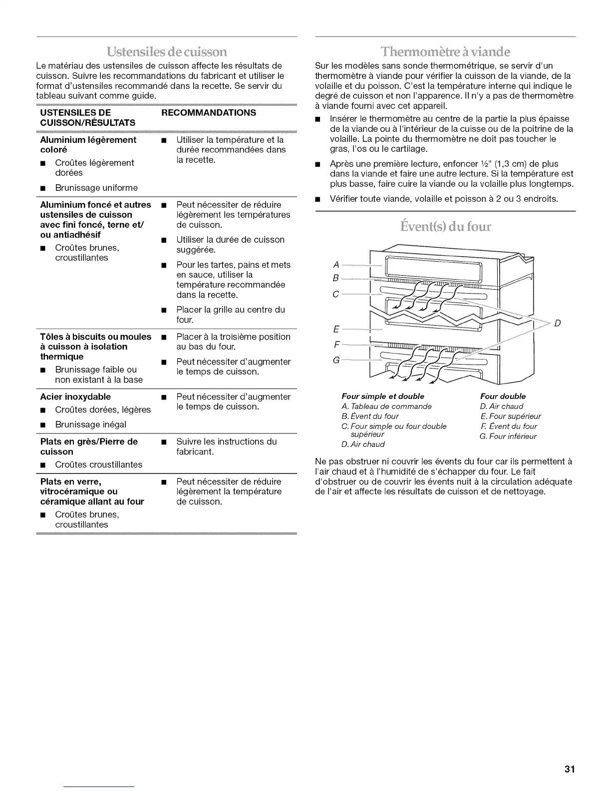 degre de cuisson et non I'apparence. II n'y a pas de thermometre