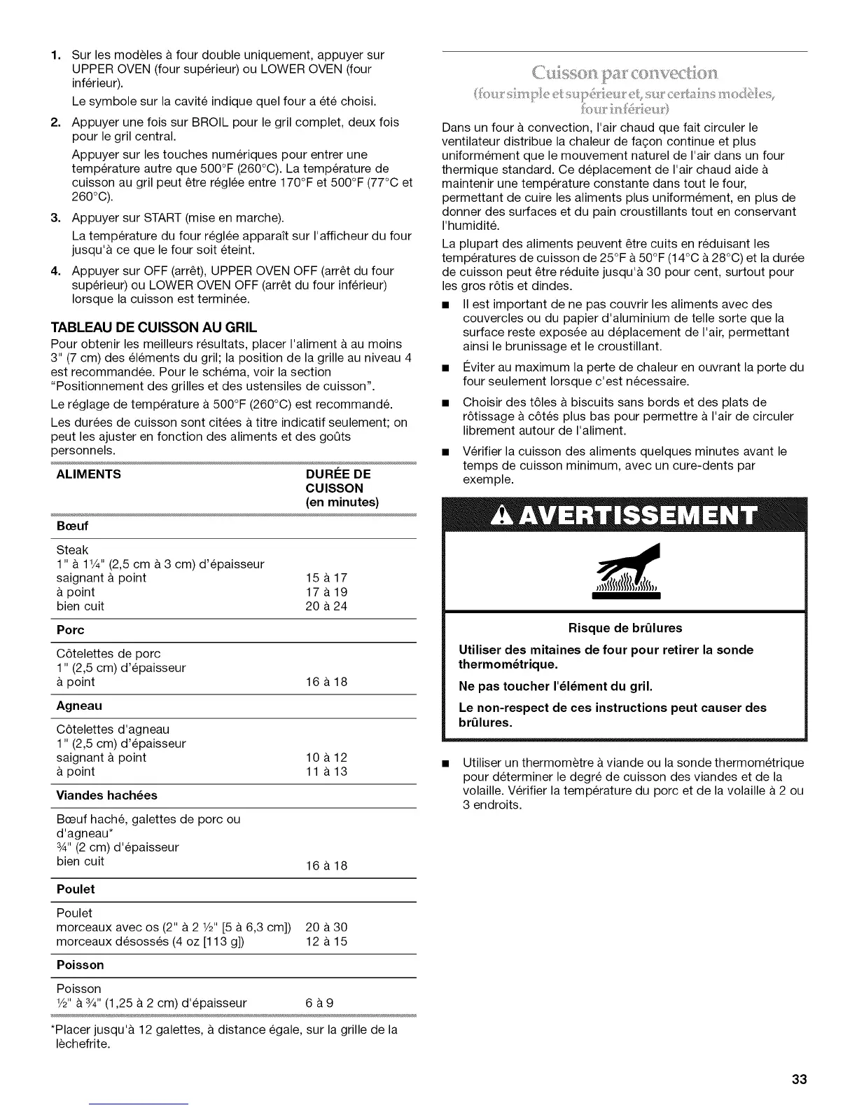 cuisson au gril peut etre reglee entre 170°F et 500°F (77°C et