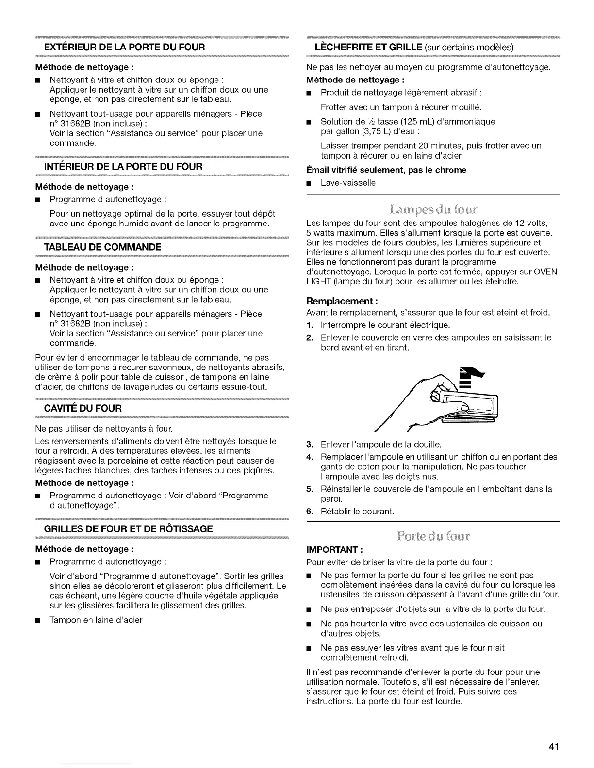Ne pas utiliser de nettoyants a four.