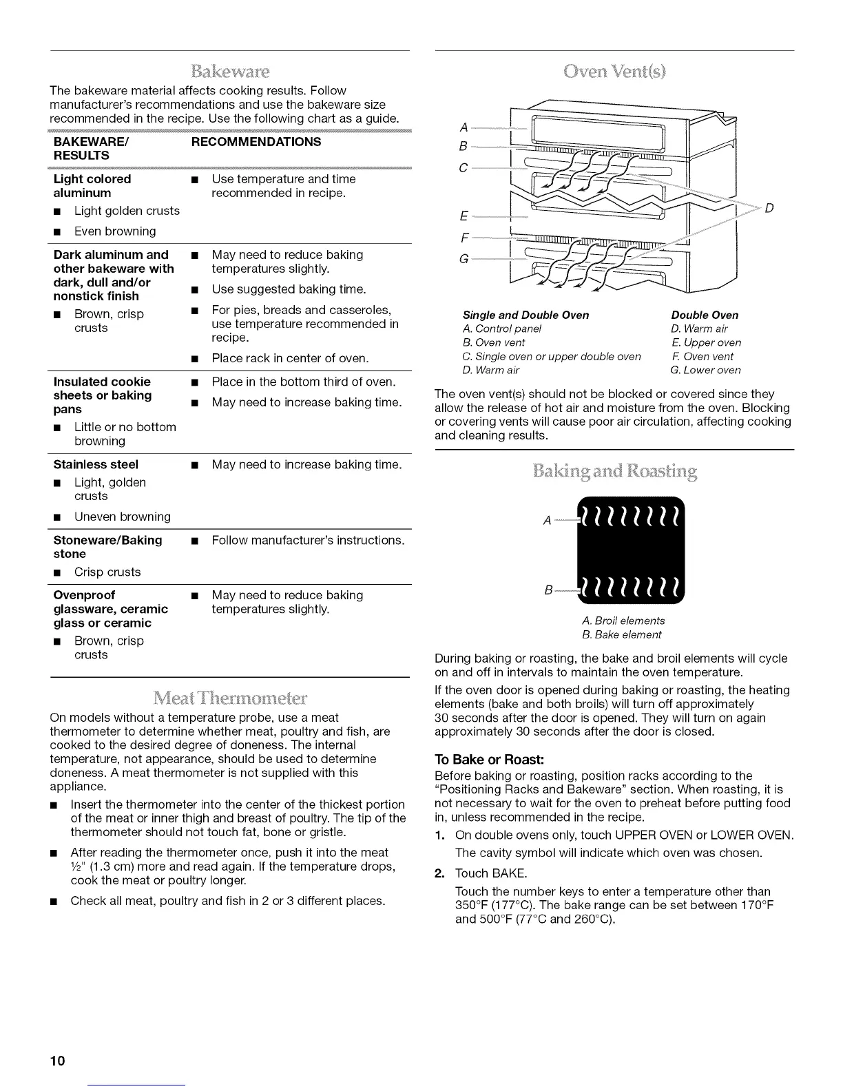 "Positioning Racks and Bakeware" section. When roasting, it is