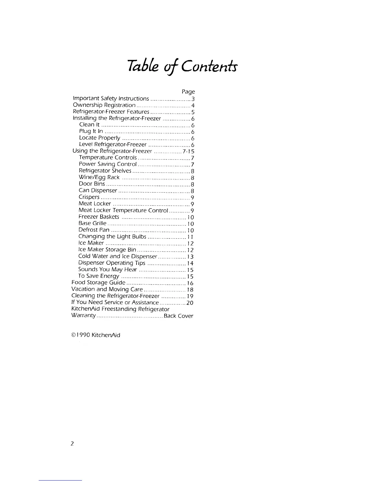 KitchenAid Superba KSRS27Q - Table of Contents