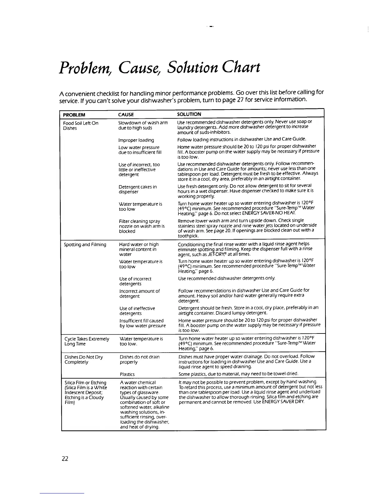 KitchenAid Superba KUDS220T - Problem, Cause, Solution Chart