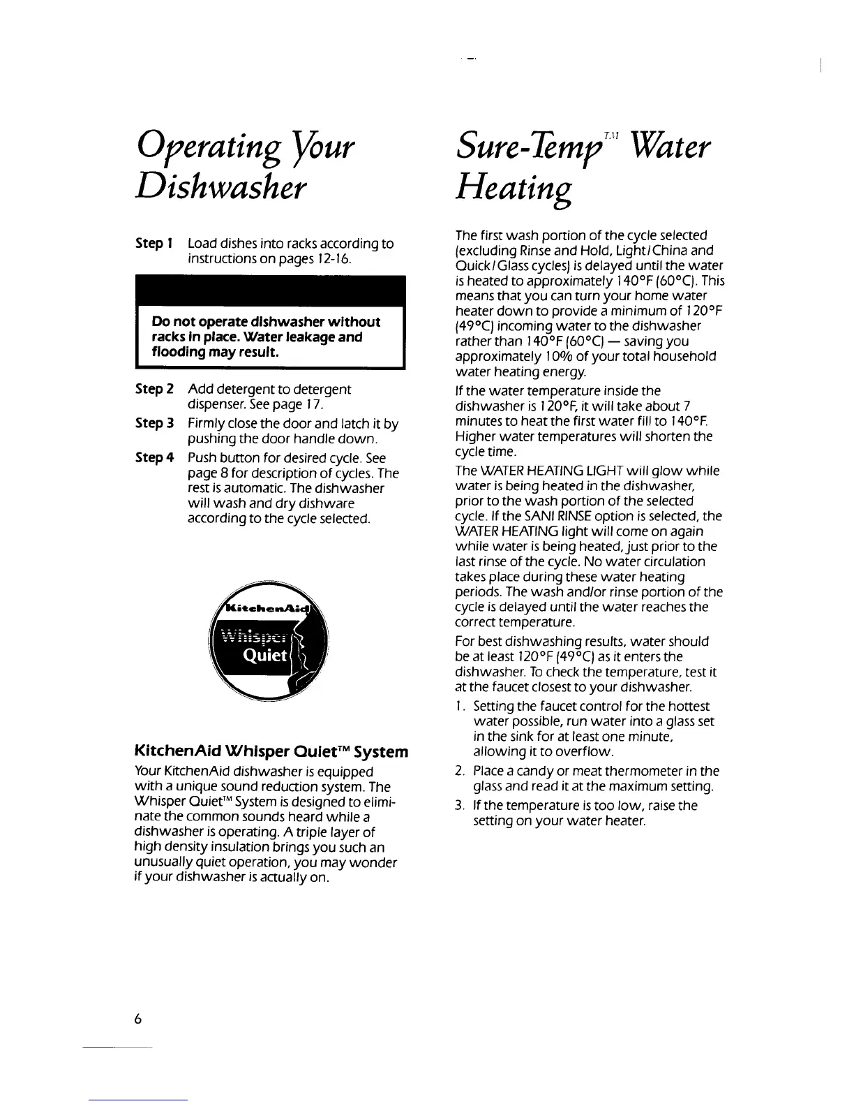 KitchenAid Superba KUDS220T - Operating Your Dishwasher; Sure-Temp Water Heating
