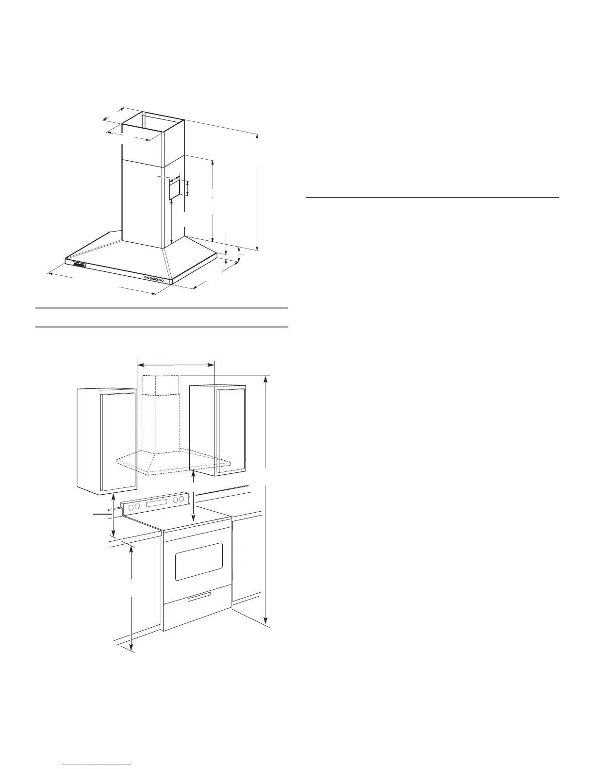 cooking surface. For higher ceilings, a 40" (101.6 cm) Chimney