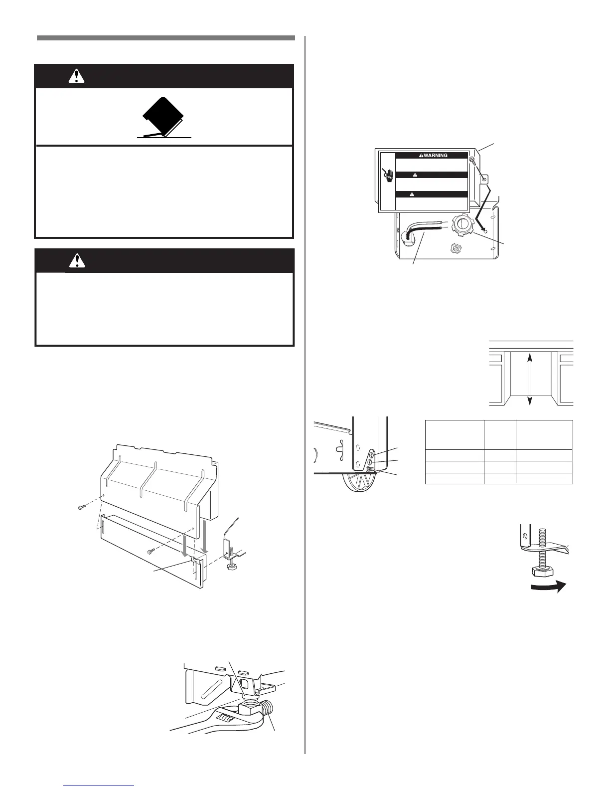 9. Ajuster les pieds de réglage de l’aplomb à l’avant (même