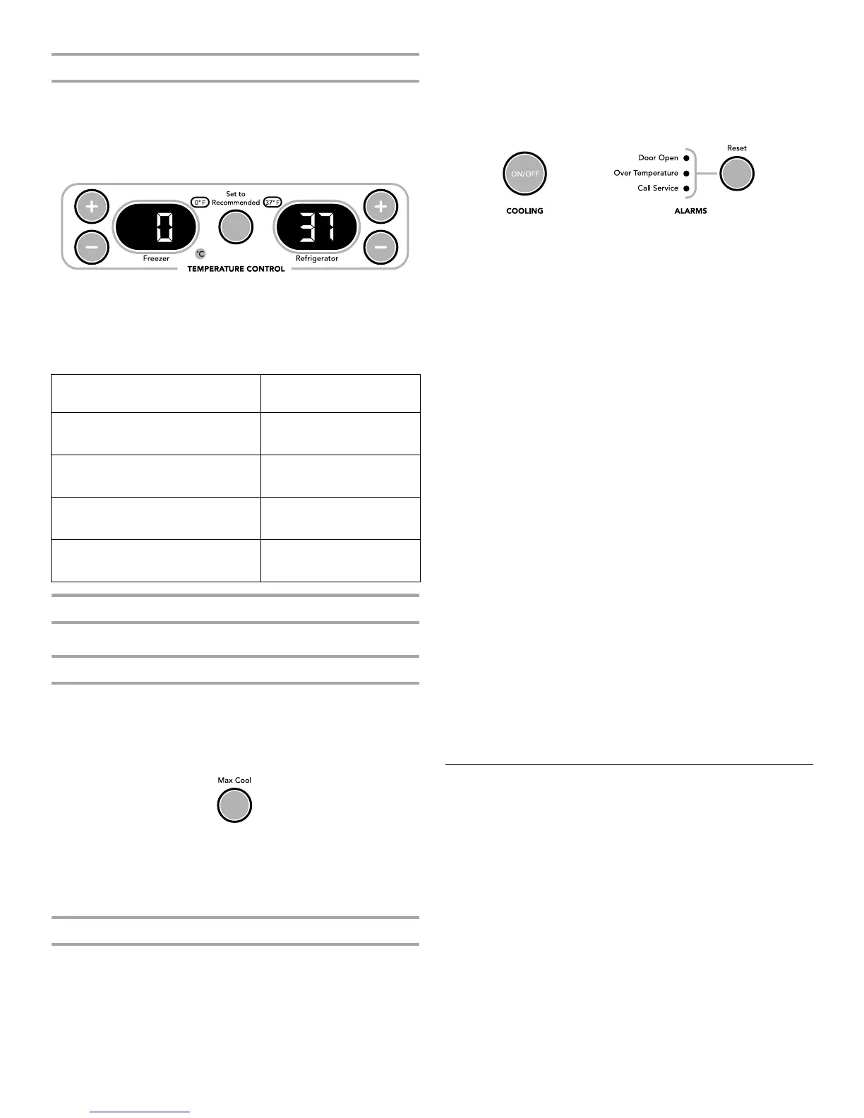 (7°C) and 15°F (-9°C) for the refrigerator and freezer