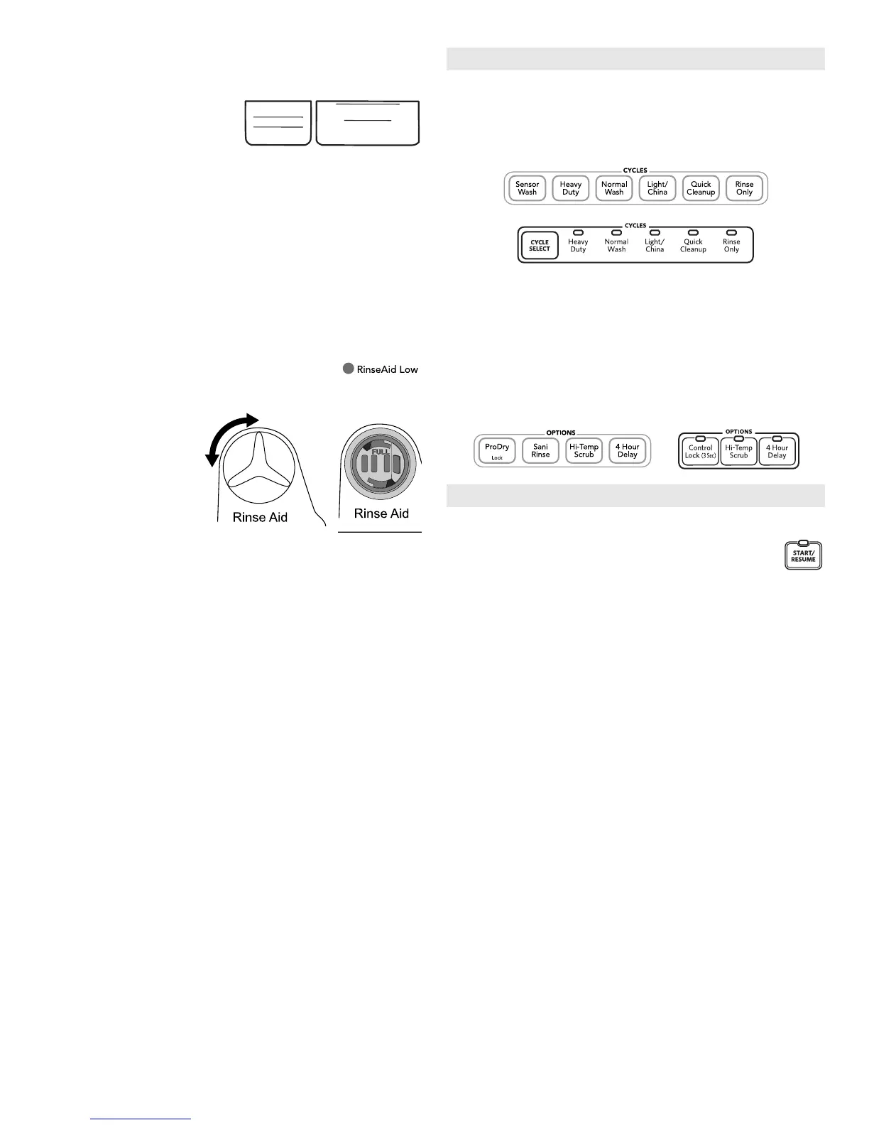 ■ Rinse aid helps to reduce excess moisture on the dish racks