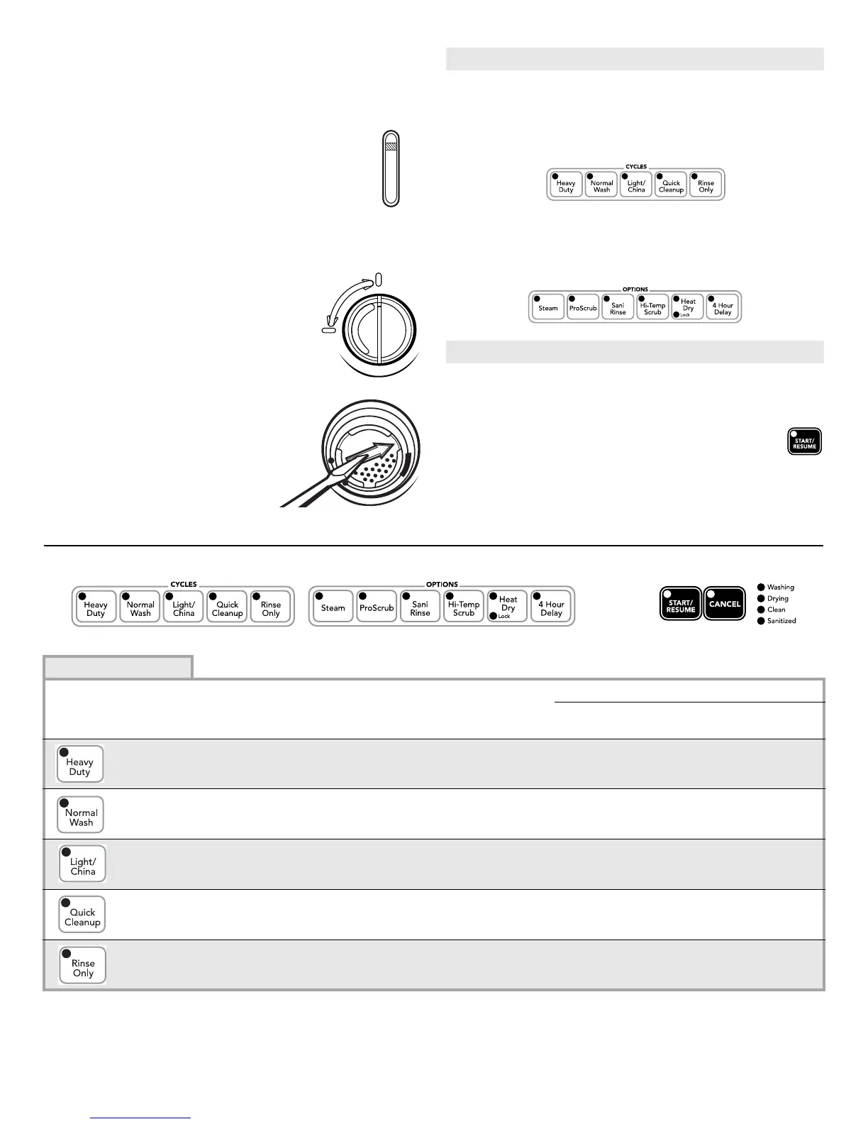 This information covers several different models. Your dishwasher may not have all the cycles and options described.