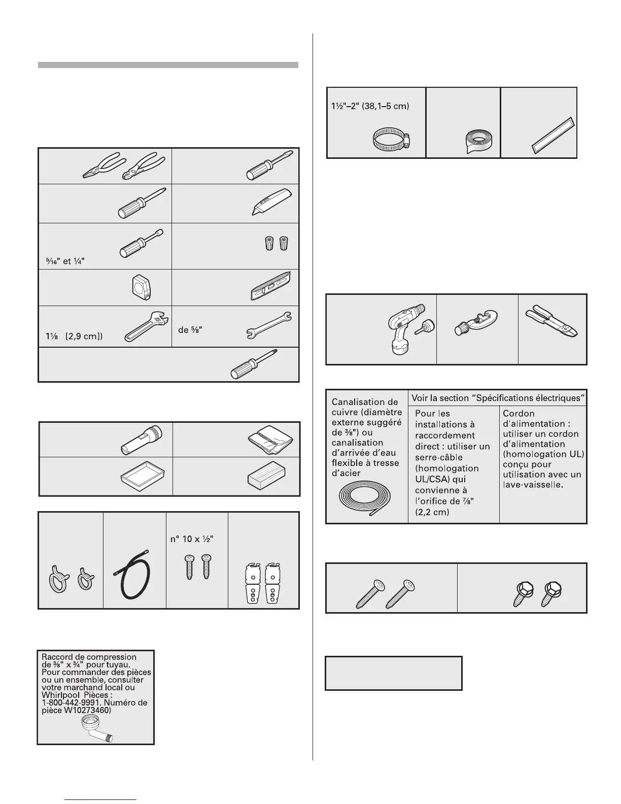 S’assurer que toutes ces pièces sont comprises avec le sachet