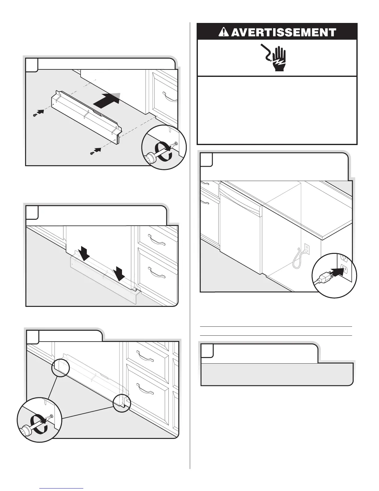 les pieds du lave-vaisselle. Réinstaller les vis à travers les