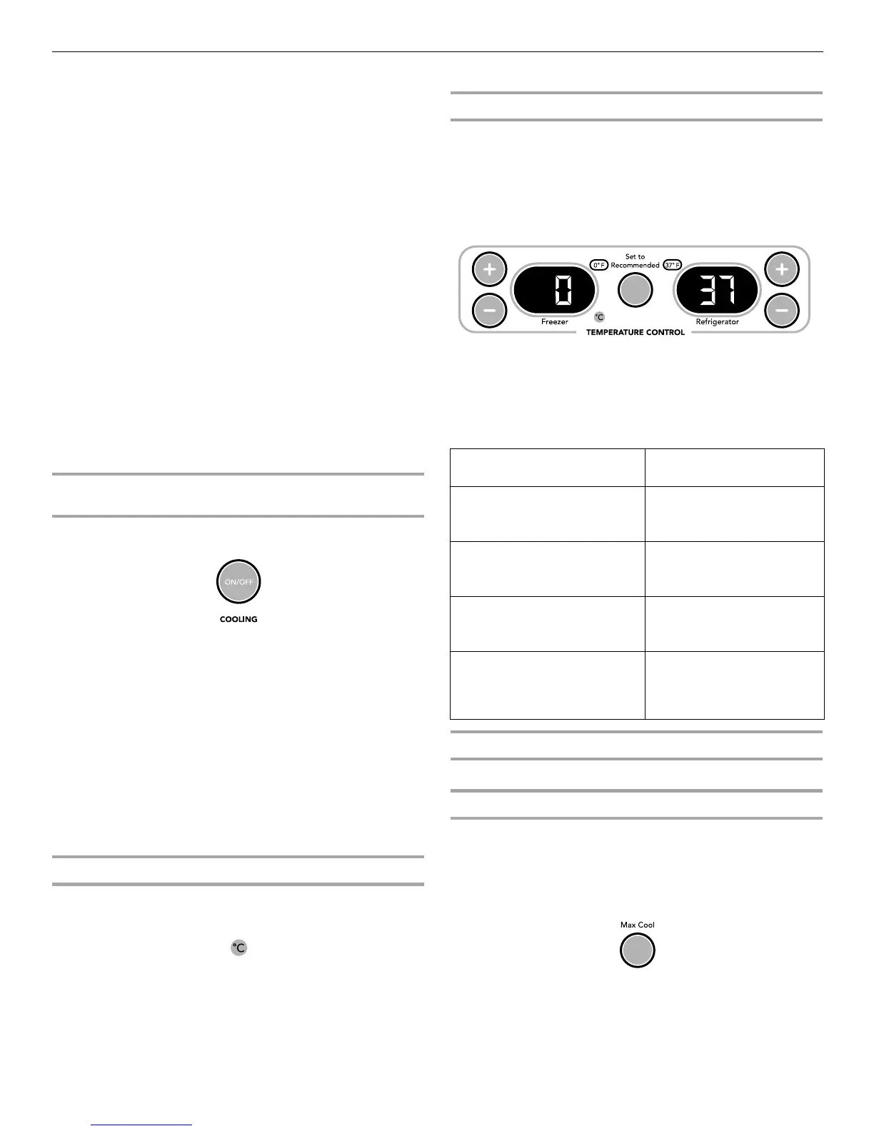 refroidissement maximal. Le témoin lumineux Max Cool reste