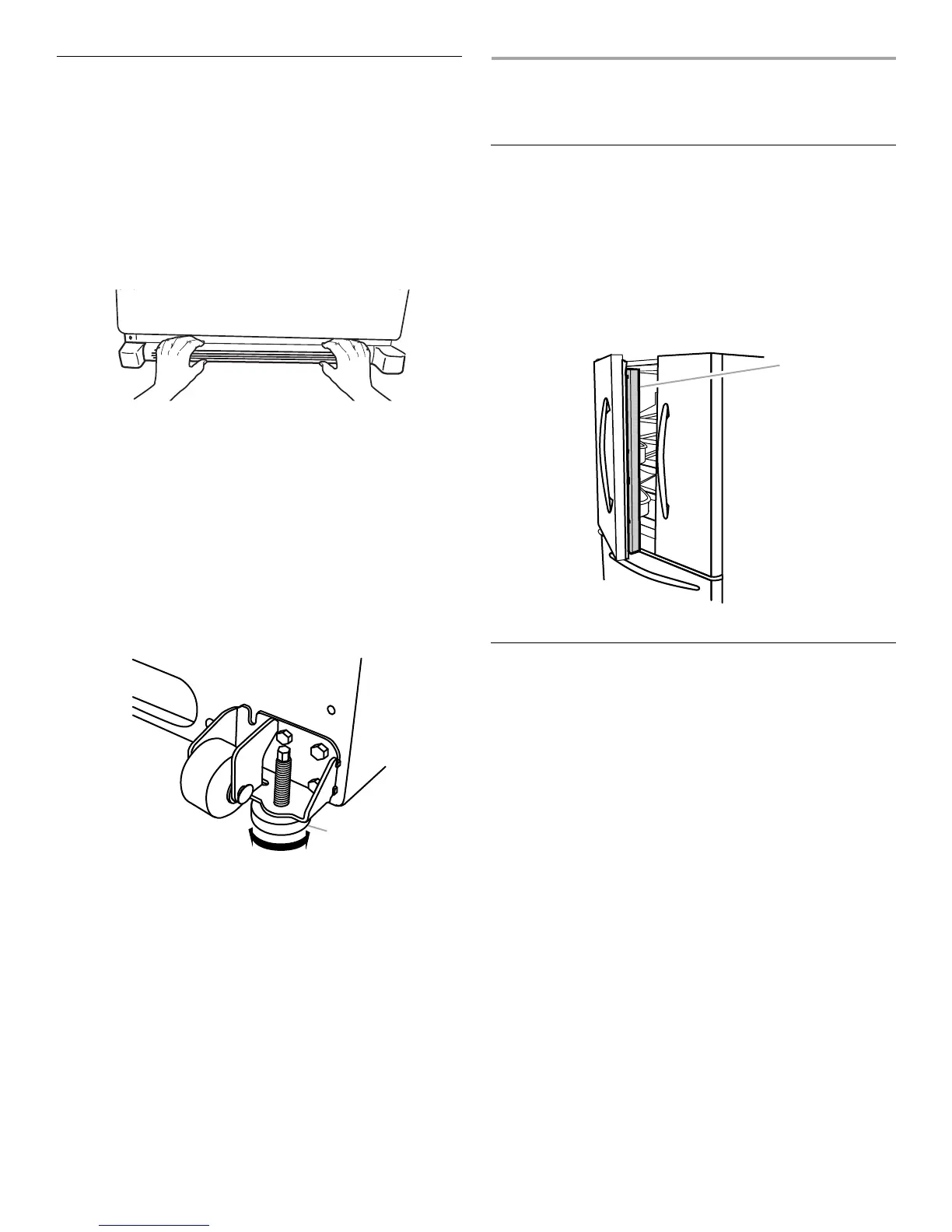 l’avant - une de chaque côté de la base du réfrigérateur. Si