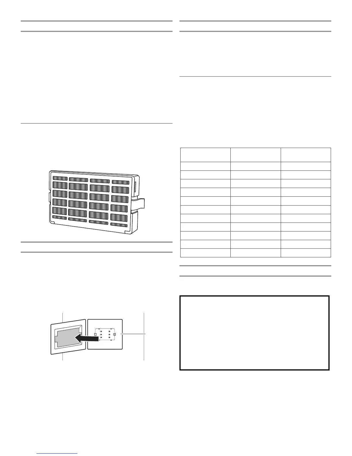 Install the air filter behind the vent cover, located on the rear wall