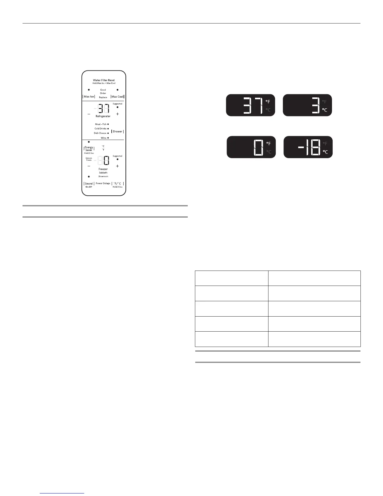 son 37 °F (3 °C) para el refrigerador y 0 °F (-18 °C) para el