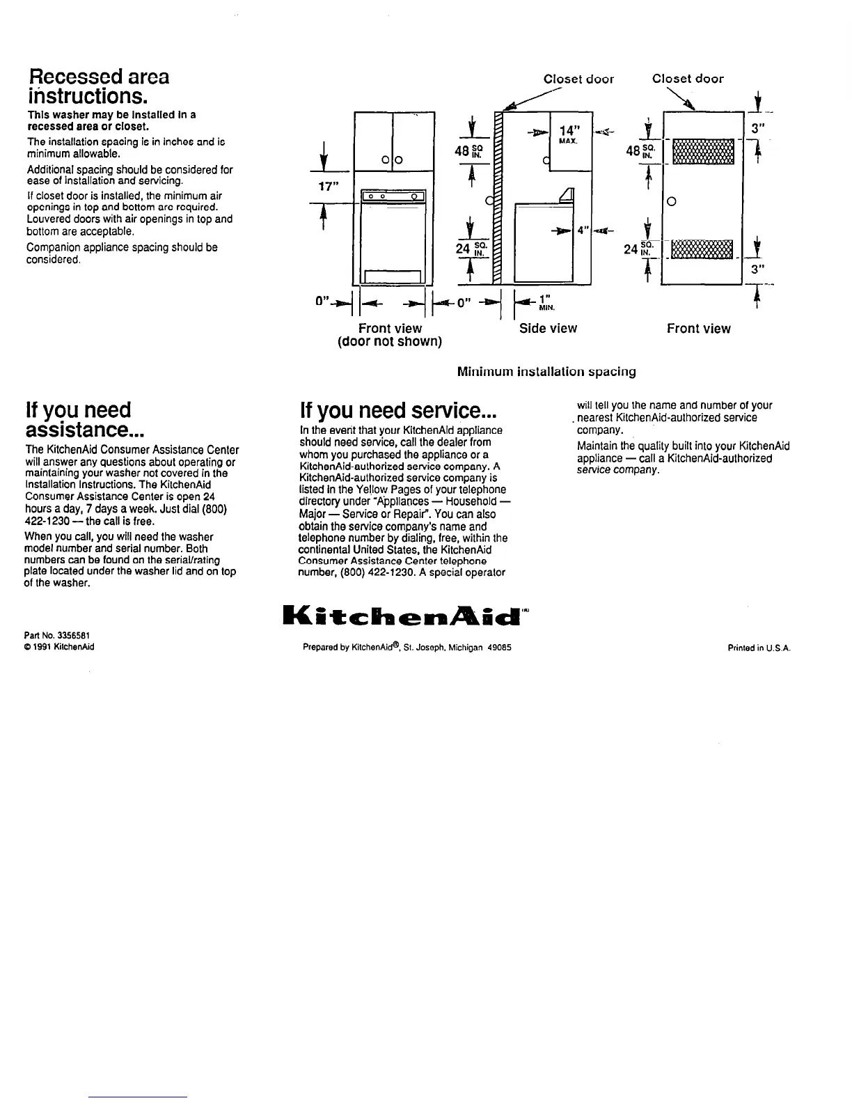 Prepared by KitchenAid@. St. Joseph. Michigan 49085