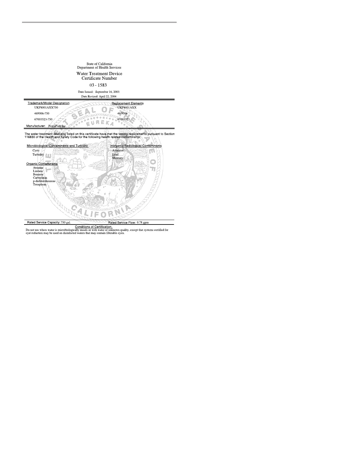 KitchenAid WRF555SDFZ - Water Filter Certifications